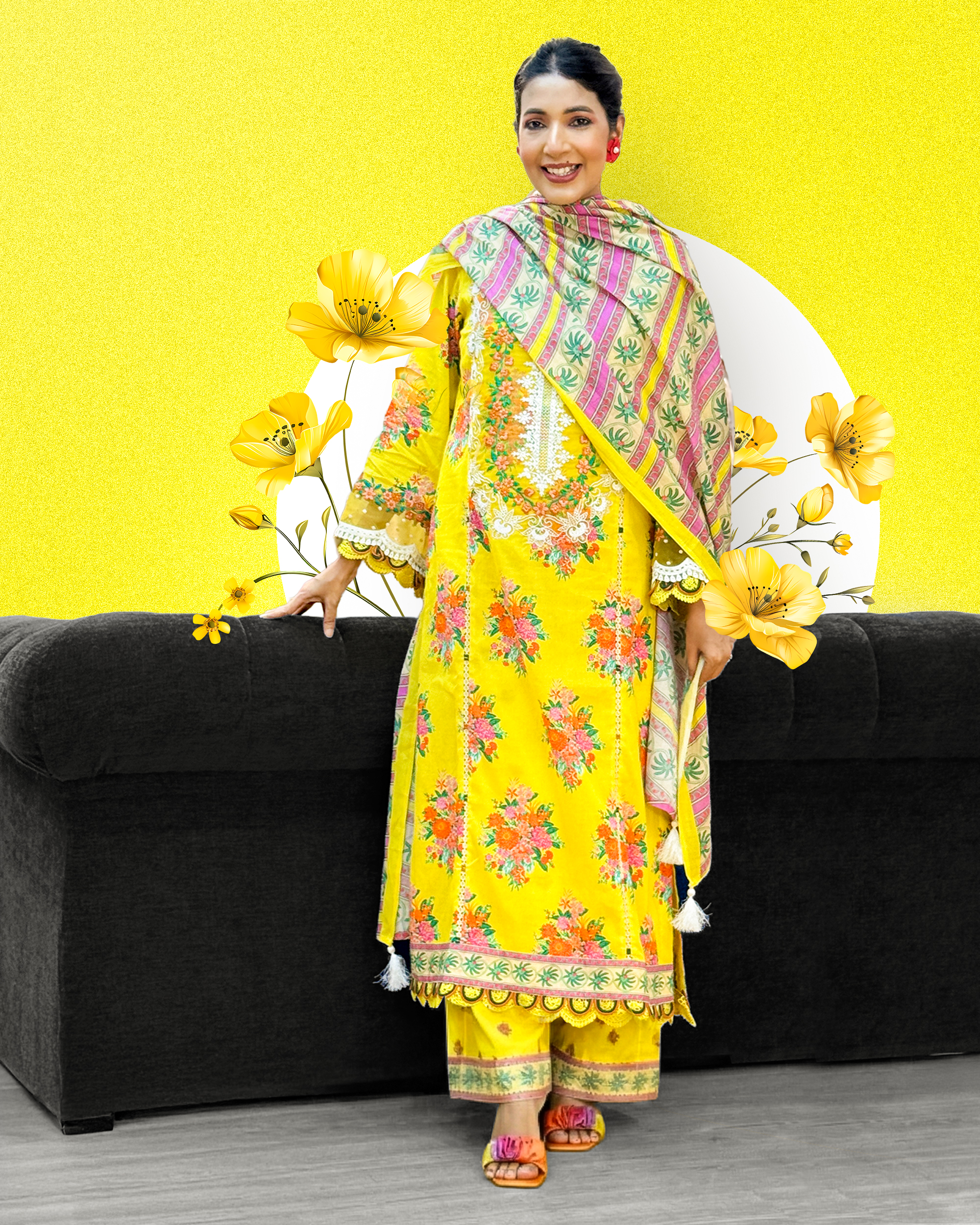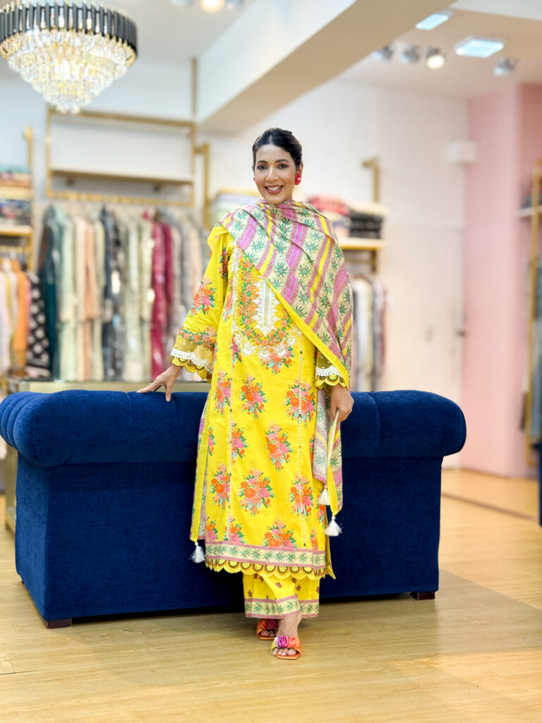 ColorLife Yellow – Gorgeous Embroidery & Floral Printed 3-Piece Set