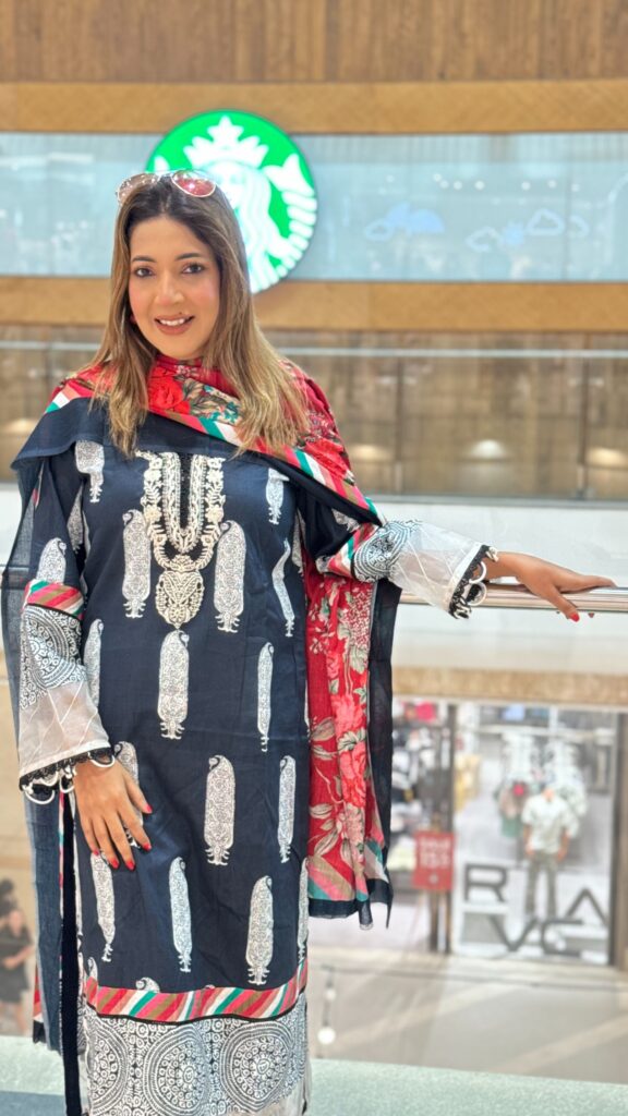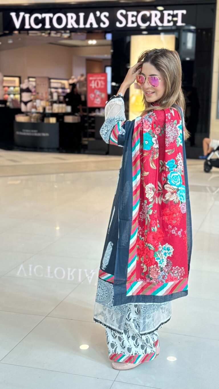 🟠 ওড়না – সফট ও হালকা কটন ফেব্রিকে তৈরি প্রিন্টেড ওড়না। গ্রে ও ব্ল্যাক প্রিন্টের সাথে মাল্টিকালার স্ট্রাইপড বর্ডার, যা পুরো লুককে দেয় ট্রেন্ডি ও প্রিমিয়াম ফিল।